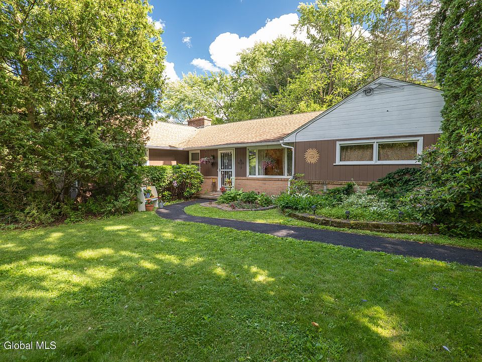 Welcome to this sprawling ranch on a landscaped park like setting in a desirable Niskayuna neighborhood. This home features 2 new BA, brand new SS appliances, spacious BRs,cathedral ceilings in LR & abundant natural light. Finished dry walk out basement could be a bonus room, play room, extra LR or 5th BR. New furnace in 2021. 3-yr old Leaf Gutter system w/a 10-yr transferable warranty. New dryer. Lots of storage. Large shed is attached to the home can serve as a work shop. Walking distance to the high school, GE, KAPL, shopping, library, Town Hall & the Erie Canal Trail. This a wonderful home families desiring the award winning Niskayuna Schools. This neighborhood is very safe & great for walks and bike rides. Wonderful neighbors on all sides.