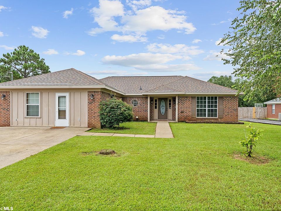 Tucked back in a cul-de-sac, featuring one of the largest lots in the neighborhood, this home offers numerous accommodations. This brick home was built in 1999 and has a Bronze Roof Certification, new central air conditioner, installed in 2021. This home features a 3 bedroom/ 2 bath (4/3 with MIL suite) layout, with an additional mother-in-law suite, a bonus room/office/ mud room, a covered back porch, a sprawling backyard, and a storage shed with covered additional parking. The kitchen features updated appliances, and a large kitchen counter, open to a spacious dining room, with a great view of the backyard. Located within minutes of Robertsdale Elementary School, Central Baldwin Middle School, Robertsdale High School, and the Baldwin Beach Express. Easy access to Interstate 10 and the beautiful beaches of Gulf Shores.