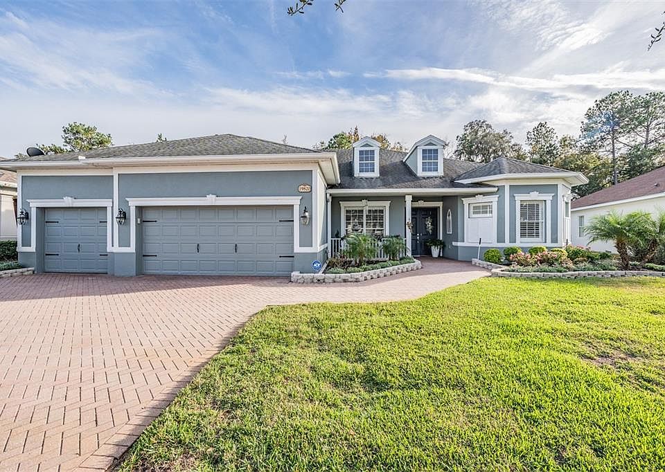 EXQUISITE Home in the Gated Cascades of Southern Hills on Conservation Lot is Ready for You! Over $50,000 in Upgraded features, situated on an oversized lot featuring Stunning Curb appeal with Dormers, Paver Driveway, Landscaped beds, 3 car garage, bay window with transoms and rocking chair front porch! Enter this Meticulously maintained home into the Foyer which is OPEN to a SPACIOUS Great room with Newly painted interior, custom painted inset on Tray ceiling, new lighting, crown molding, arches and 12 foot ceilings! Formal dining room is OPEN to Great room and boasts new lighting and optional dining room furniture. You will LOVE the kitchen with Custom epoxy counters and breakfast bar, pendant lights, professionally painted grey cabinets with crown and new hardware, subway tile backsplash, Kitchen Aid dishwasher, Samsung refrigerator, GAS range, new sink & disposal in 2022 plus eat in breakfast nook overlooking the private, fenced backyard with custom landscape beds and conservation views beyond! Sliding glass doors from the Great Room Open to the screened lanai which extends along the back of the home to add to your entertaining space! Double doors from Breakfast nook lead to the FLEX space, now used as an Office/Den with large window to enjoy the conservation views… Watch deer peek out, sand hill cranes, birds and wildlife from the comfort of your home! Guest wing has 2 secondary bedrooms and full bath with tub/shower combo on one side of the home and the Owners retreat is located on the opposite side of the home off the great room for privacy. Serene conservation views from your Primary Bedroom which offers custom Triple tray ceiling with crown molding, new floors, double closets, archway to bath ensuite with large shower, plant shelves, dual vanities with dressing area, soaking tub in bay window, framed mirrors and separate water closet with raised commode. Other upgrades include Plantation shutters, Garage epoxy floor finish, water softener, newly rescreened lanai, tinted windows, extra can lights, exterior coach lights, updated bathrooms, 8 foot door & closets, powder room with pedestal sink and all new bedroom floors. GATED 55+ section of Southern Hills is in a great location in Hernando County, just off major highway with easy access to shopping, golf courses, restaurants, airport and the Beaches! CALL TODAY!