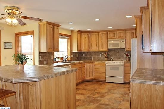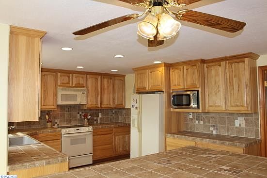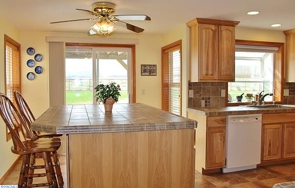 Spacious 5 BR 4 BA rambler with bonus room on one-acre with peaceful country setting and panoramic views!! Formal living room with cozy wood fireplace!! Large, custom kitchen offers hickory cabinets, tile galore, island, breakfast bar, reverse osmosis drinking water, pull out drawers in cabinets, full backsplash, and is open to large dining room with propane fireplace!! Large walk-in pantry!! Family room with wood vaulted ceiling!! Huge master suite features bay windows, walk-in closet with custom built-ins, and private bath complete with dual sink vanity, jetted tub, and large shower!! Second master bedroom with private bathroom!! Split bedroom design!! Mud room and large laundry room!! Stylish spiral staircase to bonus room/loft!! Slider off kitchen to large pergola covered patio and deck!! Fully-fenced backyard, garden area, mature landscaping, and chicken coop!! Don't miss out on this one-of-a-kind country property!!!