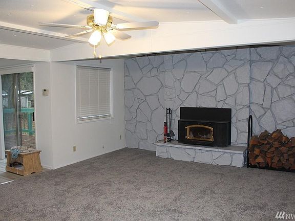 Welcome home to a private 2.5 acres of tranquil property. Covered front porch deck with hanging swing. Huge circular drive for RV, boats and trailers. Beautiful brand new plush carpet, fresh paint, brand new light tile and brand new kitchen. Oversized living room with floor to ceiling stone tile fireplace backsplash behind cozy wood stove. Gorgeous light and bright kitchen with sliding door access to back deck. Oversized 3 car garage/shop. No smkg. First/ deposit. Inc water/ garbage 12 mo min.