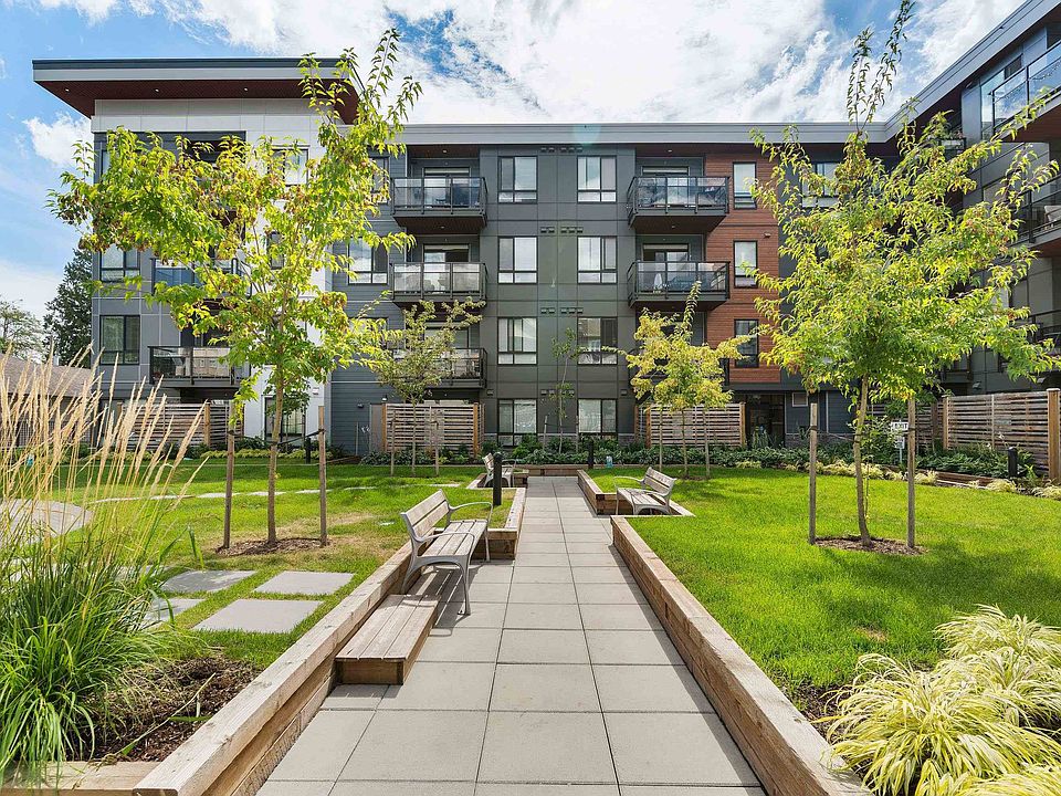 This PENTHOUSE unit in newly built "FORME on 54th" looks & feels brand NEW but without the GST! Modern, bright & airy, this TOP floor suite features large windows & loads of natural light. Enjoy preparing meals in your open concept kitchen w/ oversized peninsula counter, soaring 15' vaulted ceilings, stainless steel appliances & quartz counter tops. Take in the afternoon sunshine & evening sunsets on your west facing corner balcony w/ views of the surrounding community and mountains. BONUS value - unit comes with 2 parkings stalls AND 2 storage units! Pets are welcome–2 cats or 2 dogs (no size restriction). Situated in a quiet neighbourhood, just steps to nearby Brydon Park, all levels of schools & the soon to arrive new Skytrain station. Act fast & arrange your private viewing now!
