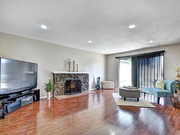 As you walk into this charming 3 bedroom 2 bath single story home, you are greeted by an open spacious living room with a lovely wood-burning fireplace and recessed lighting that flows into the dining area and kitchen. Kitchen features newer dishwasher and stove, with a nice sized dining area. Also, includes a charming breakfast bar that overlooks the living room. All 3 generous sized bedrooms offer ceiling fans, loads of light and spacious closet. Master suite has bathroom lined with tile flooring and newer white counters. Home boasts a 2 car attached garage with direct access to the house and full sized laundry hook ups. Step out to an expansive fenced back yard with patio space, great for entertaining or family get-togethers. Plus there's ample space for kids to play. Close to entertainment venues, shopping malls and freeway access. Truly a must see.