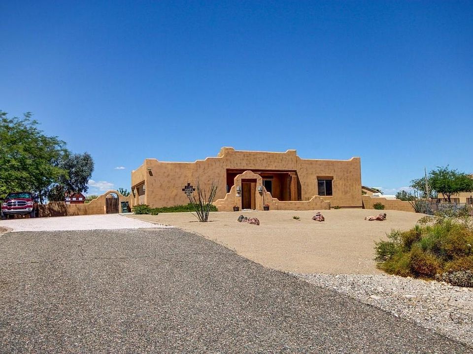 Charming Santa Fe style home nestled at the base of the White Tank Mountains! Featuring 4 bedrooms, 2 bathrooms, split floorplan, pool, built in BBQ and fireplace, 3 car garage, NO HOA and a turn out for your horses. Amazing value in a great school district, don''t miss out!