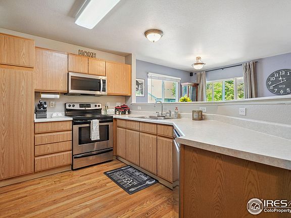 Outstanding opportunity to enjoy actual homeownership in this budget-friendly, sunny end-unit townhome perfect for first-time buyers complete with a fenced yard for their furry friends.**Take note - the community is FHA/VA APPROVED & has a RARE AFFORDABLE HOA fee of $130 per month. This amazing two-story home offers an attached 1 car attached garage and a superb floor plan that features; open concept main level living with a guest bath, laundry, updated stainless steel kitchen appliances, extensive hardwood flooring, sunny dining and family room. Upstairs enjoy newly renovated bathrooms, 2 bedrooms, each with a walk-in closet and ceiling fan; the primary has a gorgeous walk-in shower, and the secondary has an ensuite bath that would be great for a roommate or teen. The home boasts new neutral paint throughout, newer windows, fresh blinds, and a solar-powered shade in the vaulted entry. The fenced backyard with a Trex deck thats ideal for pets & backs to a pocket park plus sides a walking path. Located a mile from the light rail station with super easy access to I-25 and Denver International Airport. Low property taxes and freshly painted exterior make this a perfect move-in-ready home. Plan to see today!