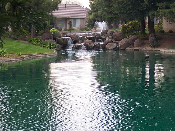 Fantastic 3 BDM, 2 BA Clovis home located in Stonebrook gated community. Living room with fireplace, ceiling fan and separate formal dining room. Spacious kitchen has laminate flooring, breakfast bar & separate eating area. Inside laundry room with sink & built-in cabinets. Huge master bedroom suite with ceiling fan, walk-in closet and dual vanities with separate tub and shower. Covered patio. Gated community includes beautiful lake, clubhouse, pool, exercise room, library and fireplace.