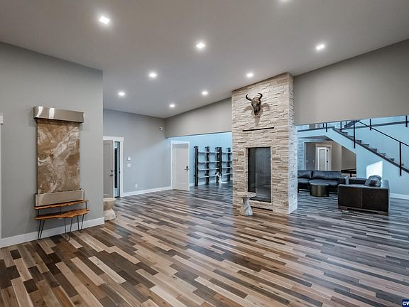 Must watch the videos tour! Stunning mid century modern home on a large lot. Every inch has been updated & upgraded. This is luxury from roof top patio complete w/fire pit and hot tub to hidden lower level wine cellar. Take your coffee on your private back deck while you relax to the large water feature or warm up next to your second B/I fire pit. Secure storage rooms, theater room, workout room, billiards/entertainment room, 5 car gar ,& RV space. Unlike any other home on the market-must tour!
