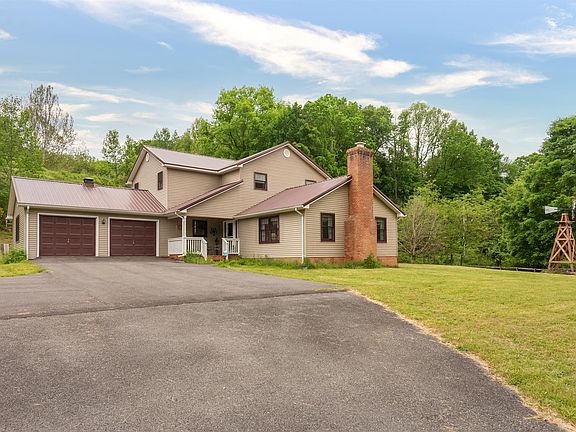 A must see property with character and potential! Lot is 32 acres of land with additional land available for purchase. Land features a beautiful home, horse barn, large garage, spacious equipment shed, and spring house on the top of the back hill. The home itself sits on 2 flat acres. 4BR, 3BA. Features fairly new metal roof, vinyl siding, full wrap around porch, two car attached garage, paved driveway and serene river frontage. Home includes hardwood floors throughout, wide stairway, granite countertops, custom built cabinets, fireplace, and gorgeous French doors that open to porch. Washer and dryer convey with property. Generex generator. Paved driveway leads to large garage. Spacious for equipment, RV storage, includes a bathroom. Garage has separate electrical system. Can use for a shop/business. Tools and machinery to convey (60K Value). Spacious horse barn has a tact room with BR. Fenced chicken coop on hill. Spring house can be transformed into a wonderful getaway location.