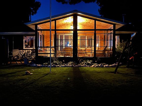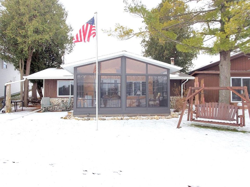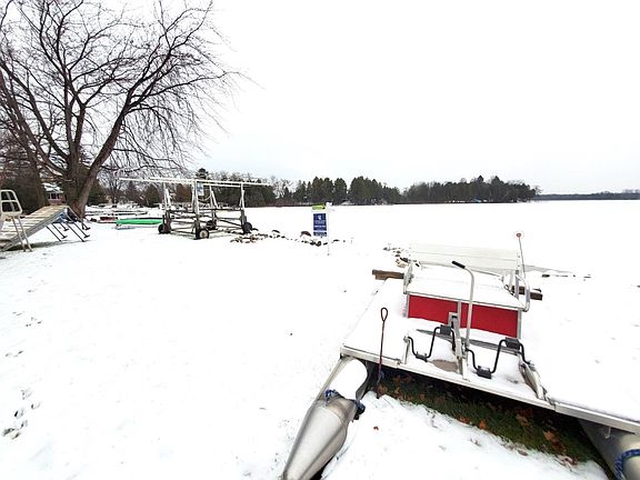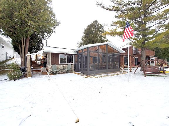 LAKE SWEET LAKE...Ideal Wilke Lake get-a-way or use as a permanent residence year round. Walk down and play on the beach frontage or enjoy the 18' boat and U-shaped pier PLUS boat lift that is included! FULLY FURNISHED w/absolutely gorgeous views from the NEWLY added 3-seasons room...FALL IN LOVE! Well maintained & updated w/wood-burning fireplace, LVP flooring, roof approx 7-10 years old, 8x11 external sleeping "shed" w/heat, storage bunker, 12x20 storage shed, Lot goes across rd perfect to build garage or have a garden. Turn-key waterfront home. Quick shopping to Kiel or other cities