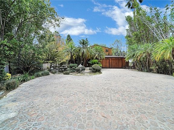 This unique custom home is situated on a full acre of meandering grounds with mature landscaping, views and multiple private spaces. If you are looking for a get away, this is the home for you. Multiple levels in the home provides separate living spaces, each with its own purpose. The main level offers kitchen, breakfast nook and dining area. A grand great room has high ceilings, fireplace and wide expanses of windows, the galley style library opens to this main room creating a feeling of huge space. Main suite offers a spacious room with walls of windows, interior sauna, and full separate office area. The lower level has bedroom, bath and dance studio, while the downstairs has storage areas, retreat with custom built in bookcases and a wine room. Pool is secluded and feels like a private oasis. Enjoy the views peeking through the amazing lush landscaping. The separate guest house has kitchen, living room with fireplace, large bath and main floor bedroom. Set privately there is separate driveway access to these guest quarters. Additional amenities include tennis court, multiple decks, large grassy areas, secluded location, secondary driveway access with gated entry, and gated primary entry. This is a 'one of a kind' home, bring your imagination and paintbrush to realize your dreams. The adjacent home is also available for sale.Refer to listing at 6315 Frank. This is a one of a kind home with emphasis on quiet spaces, blending with nature, peace, tranquility and uniqueness.