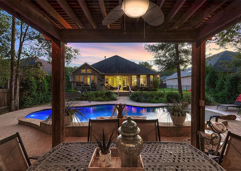 INCREDIBLE! What else can you say about this fabulous quality Trendmaker Villa patio home. Iron gate brings you into the slate covered front patio. Stunning double entry doors draw you in to the main home with its open floorplan, split bedrooms, crown molding, rich wood flooring, study with french doors and an abundance of windows. The kitchen boasts an oversized granite island and casual eating bar, 42\" dark cabinets, stainless steel appliances and 5 burner gas stove. The en-suite bedroom is spacious with a large shower, soaker tub, 2 large closets with built-ins. The dining area offers plenty of room to accommodate entertaining styles. Large utility room. Half bath. Tandem 3 car garage with wall mounted cabinets. Move out to the backyard oasis. Grill and chill on the covered patio and relax in your own party pool. Work from home. Entertain with ease. Relax in the pool. Have it all. The color and design of this home are steller! NO FLOODING ON THIS PROPERTY.