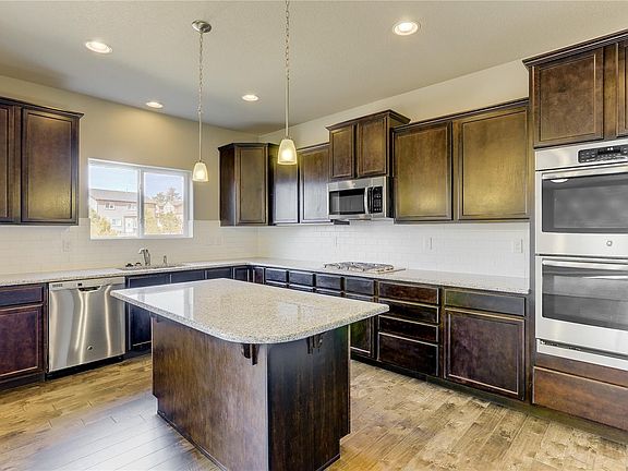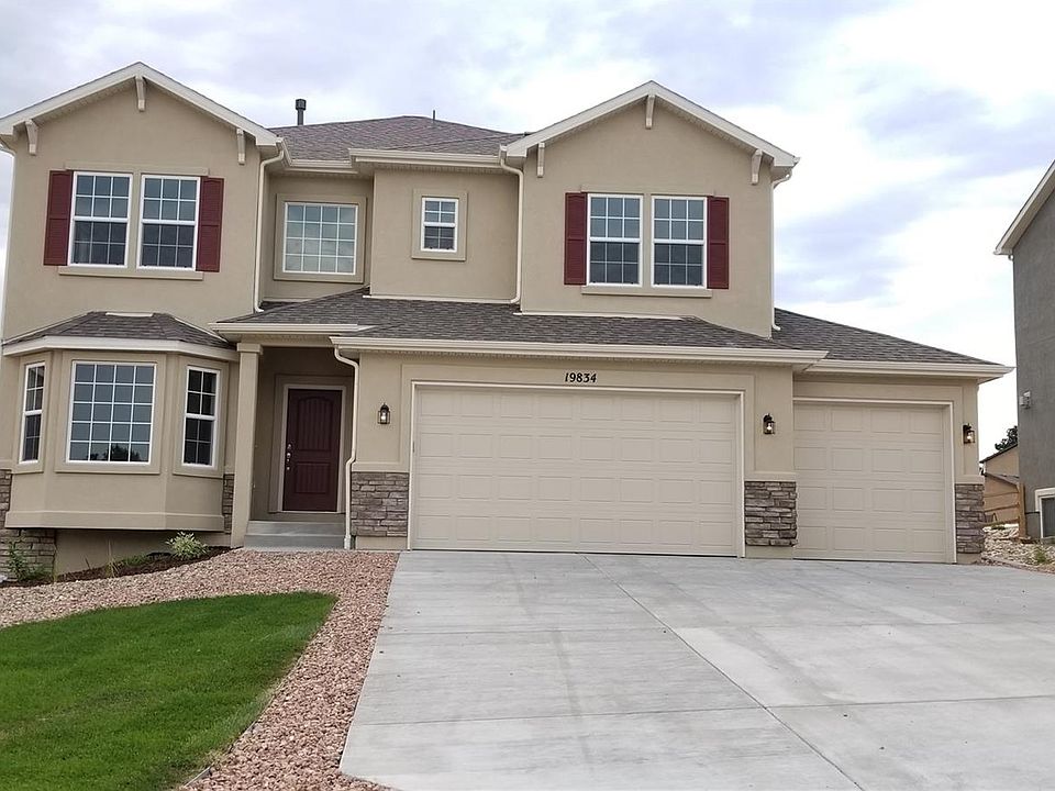 This 4,012 sq.ft. MacLaren plan with 5 bedrooms, 3.5 baths with all granite tops other than powder bath, study, open concept 2 story home is the ideal home for raising your family and allowing them to grow up in. The views of Pikes Peak are spectacular and the backyard backs to a walking trail that runs through the entire community. This home has all upgraded and stately features from gourmet kitchen with double ovens to a beautiful corner stone surround fireplace in the great room, large office, gorgeous master retreat(with the best views), and 3 car garage for extra toys, cars, or storage. The basement is where your friends will love to visit for game day as there is a fully finished wet bar with granite counters. This home sits on well over 1/4 acre lot with an east facing driveway. This will not last long!