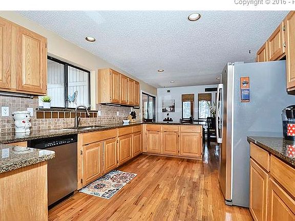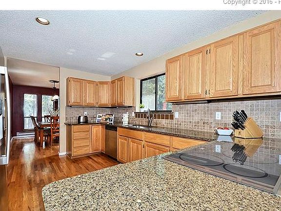 Beautiful D38 Home on almost 3/4 acre lot! (some exterior paint needs tlc) Spacious kitchen with granite, stainless appliances and smooth surface range. Hardwood floors, fireplace, vaulted ceilings and sunroom off kitchen. Private security force, a country club with golf course and nordic skiing, numerous neighborhood trails, fishing ponds (stocked in summer) and a sled hill "Toboggan Hill". Top O The Moor is a primary street for plowing along with Woodmoor Blvd, so there's in/out access in the winter months.