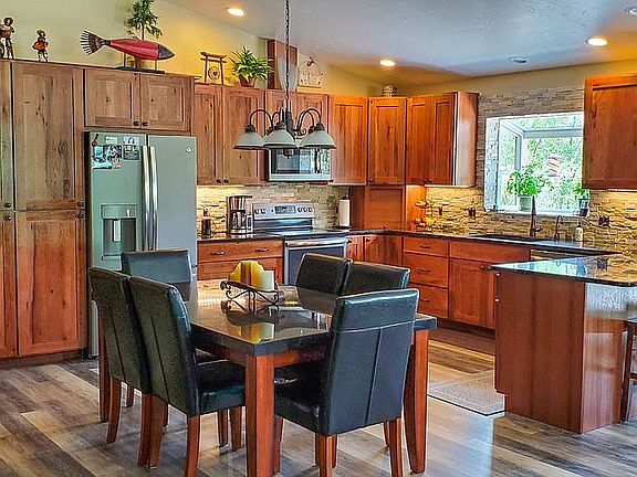 SPECIAL PROPERTY - Prime 20 private acres with pond & creek running through. Five bedroom, 3 ½ bath two story ranch house in a friendly, well-established neighborhood with open floor plan. 2900 sq ft with giant rec room, vinyl, slate & carpet flooring. A RARE FIND! Nearly completed remodel by original owners/contractors. Outbuildings include 840sq.ft. garage + 392 aux bay (both heated & insulated) plus bonus room, hay barn, bunkhouse & shop. Garden area, covered front deck & back deck looking over the pond. Abundant wildlife & waterfowl - trophy whitetail & turkey hunting. Float & fish: access 5 min away & 10 min from Florence bridge access & beach. Multiple hiking, biking opportunities, paved bike path along hwy - north & south. New efficient pellet stove. Three high producing wells. New landscaping & UG sprinklers, mature trees. Call to schedule showing of this paradise. See video at Schmid Construction Facebook page or link in posting. Offering buyers agent 2.5%.