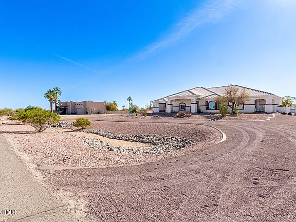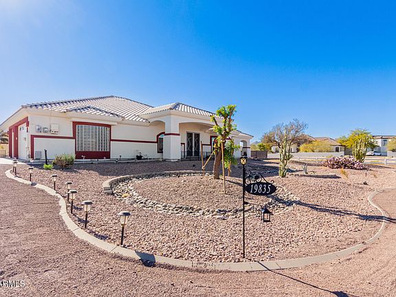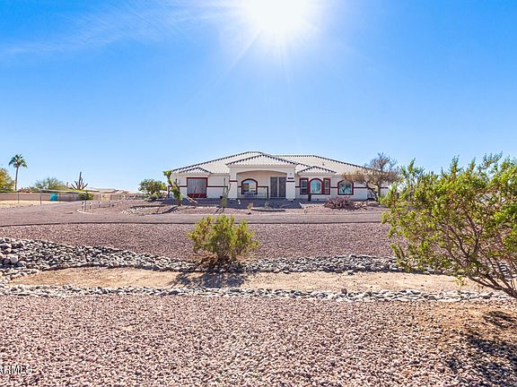 SELLER TO OFFER CREDIT FOR INTEREST RATE BUY-DOWN WITH ACCEPTABLE OFFER!! Take pride in residing in this captivating, energy-efficient home in Litchfield Park, where style meets comfort! Situated on a highly desirable corner lot, it displays a 3-car garage, RV gate, circular driveway, and an inviting front porch. Inside, the large & airy great room sets the tone for a delightful living experience, enhanced by a cozy fireplace, glass block windows, and pre-wired surround sound. Features like tall vaulted ceilings, tile flooring, ceiling fans, plantation shutters, gorgeous light fixtures, and designer palette add to the overall charm. Gourmet kitchen comes with plenty of cabinets & shelves, stainless steel appliances, a two-tier island with a breakfast bar, granite counters & backsplash, and a breakfast nook. Owner's primary retreat is a true gem! Direct outdoor access, an ensuite with dual sinks and dual showers, a jetted tub, and a walk-in closet. Complete the primary suite with outstanding views of the White Tank Mountains. Hidden next to the garage, there's an attached guest suite with a half bath and private entrance. The massive backyard includes a full-length covered patio, fire pit, and fragrant citrus trees to enjoy fresh fruits. The tac room/storage shed in the backyard is equipped with electricity and plumbed for water. If you're looking for over an acre of property, no HOA, owned solar, and plenty of space for everyone you don't want to miss this opportunity. Located just minutes from the State Farm Stadium where the Arizona Cardinals play, shopping, dining, resorts, and so much more!