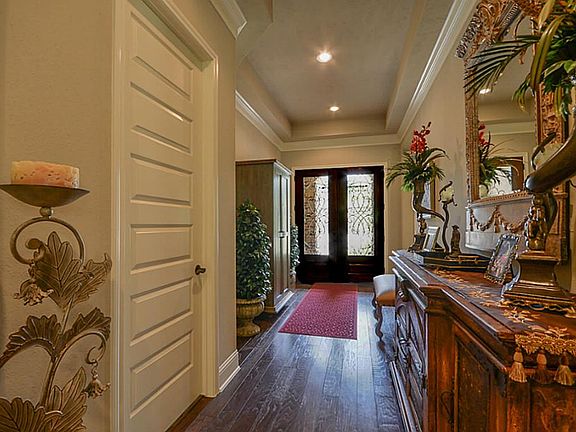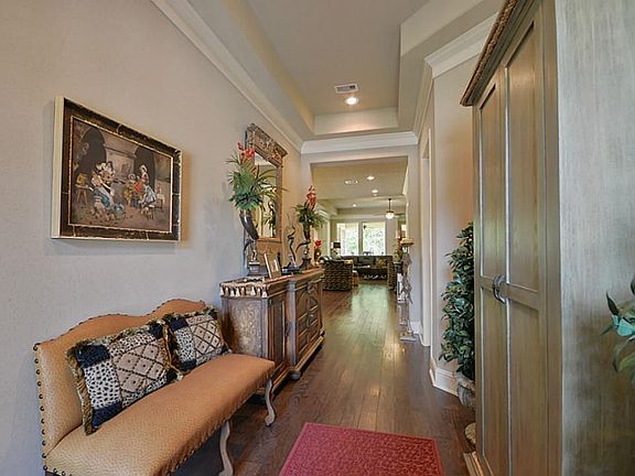 Exquisite home(& rare resale) on exclusive street of upscale Trendmaker Villas. Gorgeous hardwoods in all living spaces and bedrooms. No carpet! Beautiful millwork with recently added built-ins in living room, study and utility room all with granite countertops! Outdoor living w/fireplace, grill and gorgeous view of wooded back yard. Water softener & filtration system. Tandem garage w/epoxy floors and built-ins. Perfect home for wanting to downsize without compromising on quality.