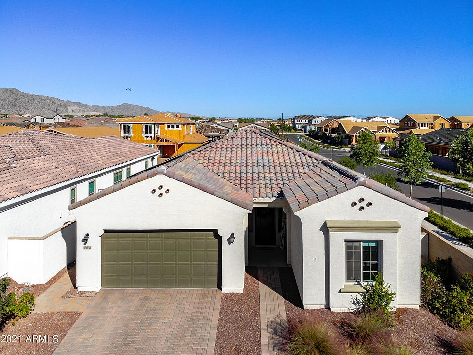 3 bedrooms and a den 2.5 bath single level home with the most amazing master bathroom , New flooring 10/21 , gas stove, Quartz counter top 12 Foot sliding doors lead to patiolaundry room has a door connected to the master closet Solar owned and paid off . Electric car charger in garage.. Conveniently located between Verrado High School and new Fry's Marketplace off Indian School Road.