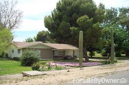 The area - Quiet and secluded but still close to what's happening. Near the I10 freeway but it is not seen or heard. This home is on 5 green acres of irrigated land that surrounds the home which is a great canvas for all of the mature trees and rose bushes. The green irrigated pastures are on both sides of the home. The shop in the back - 900 sqft. includes a security system on the shop and the home. The Home - 2400 sqft of old fashioned open space. 3 oversized bedrooms and 2 bathrooms. Storage rules in this home with 3 hall closets 1 linen 2 miscellaneous and tons of open shelving in the wetbar/office area. French doors that separate the front living room from the dining area and open to the front hall. A functional wetbar with a sink and yes more storage. The window in the kitchen faces the back yard to what could be the view of your horses and/or the kids playing in grassy yard. The family room is huge and has a fireplace. If you have children, animals or a hobby that HOA doesn't like this property is for you. For more pictures see photos on facebook "homeforsale arizona" or text me on 623-980-9505 or email me at misskayleen@gmail.com and i will send them to you.Additional property info: http://www.forsalebyowner.com/listing/00EBD?provider_id=28079