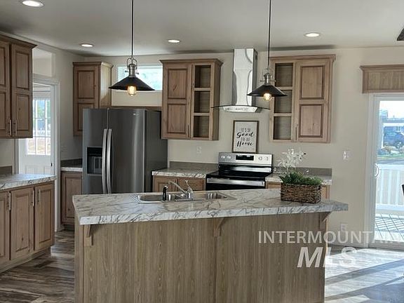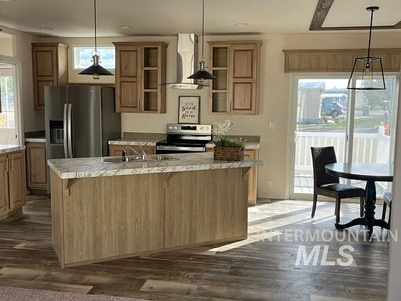 Wonderful split bedroom floor plan with coat/shoe drop zones by doors, also a family room and living room! Enjoy this new home with a view of the lake from the large back deck! No other homes will ever be built around this home backed up to the open green space! The open kitchen with large island has all SS appliances, and a huge separate bathtub and walk-in shower in the master. The family room has pre-installed TV connections and shelf, large windows and a sliding door to the back deck. Located in SE Boise in beautiful Blue Valley Lakeside Community. Convenient proximity to Downtown Boise, Boise Airport and Lucky Peak Reservoir! Lot Rent $690