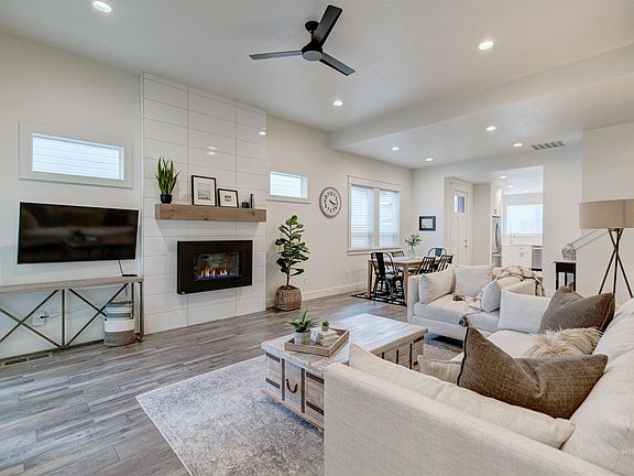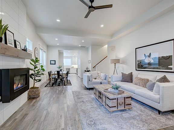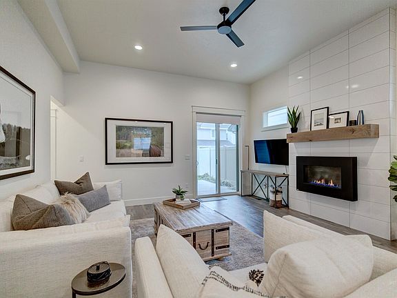 This gorgeous light bright modern floor-plan by Hallmark Homes has so many beautiful features. A large great room with soaring 11ft ceilings and cozy fireplace. Large kitchen area with loads of cabinets, plenty of quartz counter space and a pantry. Lovely main level master suite with walk in closet, dual vanities and a fully tiled walk in shower. Secondary bedroom, full bath and laundry are also on the main level. Upper level has a large bedroom with its own full bathroom. All of this in the incredible new Pine 43 subdivision! Perfect location, close to The Village, shopping, entertainment, an easy commute to downtown Boise and the airport. Neighborhood features pool, sports courts, and wonderful landscaping.