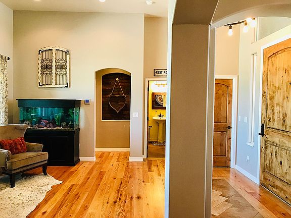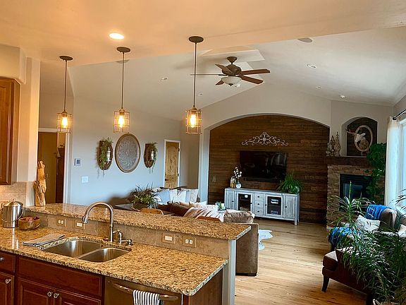 BEAUTIFULLY UPDATED with over 3500 sq ft, 6 bedrooms, 5 bathrooms. 2 master suites, granite everywhere, gorgeous hardwoods and tile, custom wood walls, huge outdoor covered patio with a hot tub. BEAUTIFUL, PERMITTED apartment above garage with its own laundry and granite counters and full kitchen. 2 acres, with pond and dock, aerated by a windmill, stocked with fish. Cute little barn and corrals ready for animals!! High efficiency heating and cooling unit with humidifier. Huge oversized 3 car garage and views galore!!! Will happily pay commision to buyers agent.