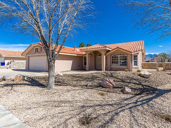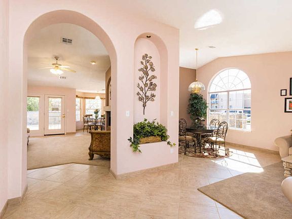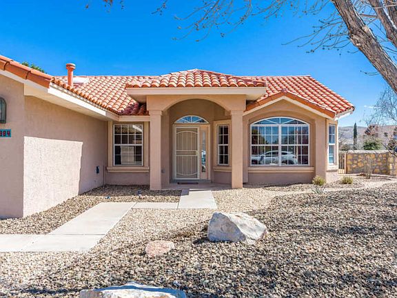 Calling all sun-lovers! This home at 1984 Pebble Beach Rd., Las Cruces, NM has bright, airy sunlit rooms & is powered by the sun with solar panels! Beautiful & well-maintained, this home offers great architectural elements along with an easy-care, economical Southwestern lifestyle. The bright and clean kitchen has wood cabinets with designer pulls; all appliances (incl. washer & dryer) convey. With 2 living and 2 dining areas, there is plenty of room for entertaining or just hanging out. Family room has a beautiful gas assisted wood-burning fireplace & French doors opening to back patio. Ceiling fans and skylights throughout. The large master bedroom has French doors and windows to back patio. Master bath has double sinks, large tiled walk-in shower & a very generous walk-in closet. Home has refrigerated air, almost new high-efficiency hot water heater. Enjoy the beautiful tiled East-facing back patio and backyard with grass and shade.