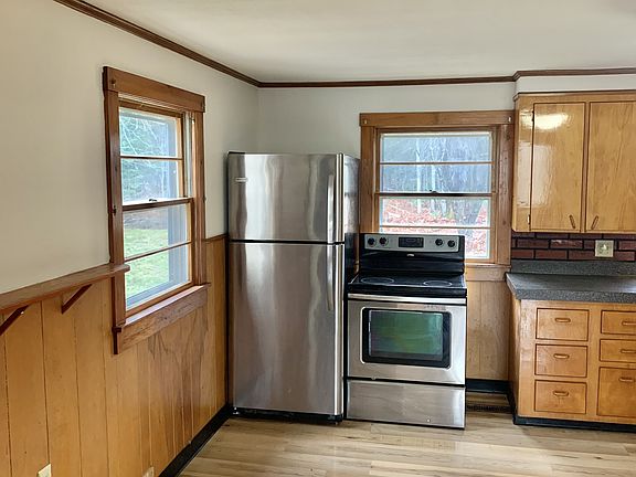 Stone-hearth wood stoveReal hardwood floorsUpdated bathroomMetal roofLarge windowsSpacious eat-in kitchenWasher and dryer