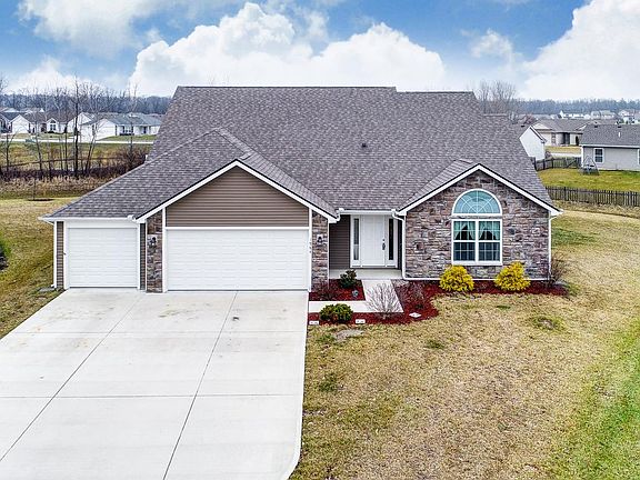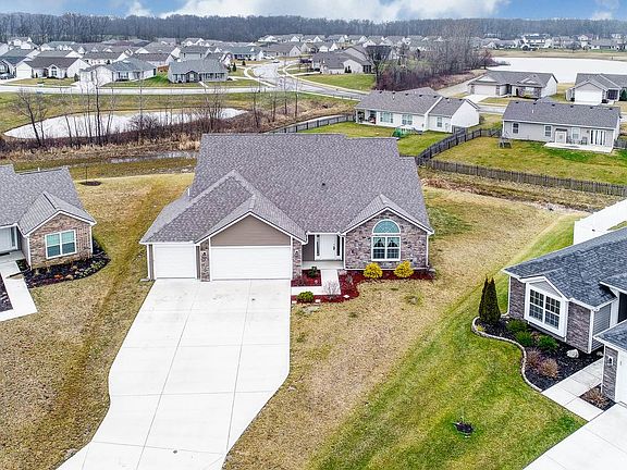 Master suite on the main floor of this 2015 built lofted ranch by Hawthorn Valley. 3 bedrooms, 2.5 baths, and 3 car garage situated on a large cul-de-sac lot in Stratford Forest, a northwest allen county community. Appealing stone and vinyl exterior. Upon entry, clean lines of the vaulted ceiling up to the open rail loft, and gas log fireplace with stone surround, capture attention in the great room. Large kitchen features an island, lots of cabinet space, pantry closet and all black Kenmore kitchen appliances. Nook area with glass sliding door leading out to a nice little covered porch overlooking a small association pond. Perfect Main level master suite has dual vanity, tile surround with oversized tub/shower combo, walk in closet. Two huge additional bedrooms are on the upper level sharing the 2nd full bath along with a large loft area. At only 4 years young, maintenance is nearly worry free. Great location, close to everything SW Fort Wayne has to offer. Happy 2020!