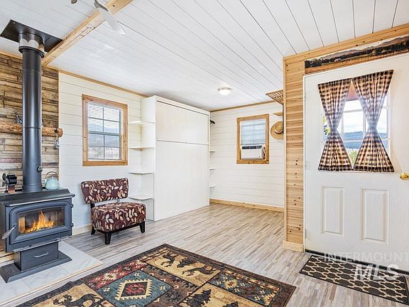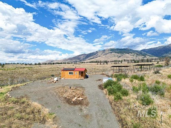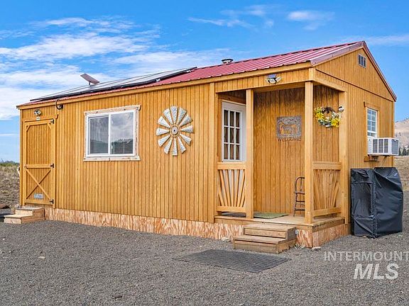 Off-grid tiny home paradise off HWY 71 towards Hells Canyon! Look out your back door at views of Cuddy Mountain! Four solar panels 2000 kw with battery backup system, private well, 1000 gallon septic system & more! This retrofitted 14x26 Hickory Shed on 5.11 acres is completely finished & fully furnished, plus engineered for the mountain snow conditions. The murphy bed is a perfect space saver & includes a swivel mount tv & storage space. Your living room is complete w/ a wood stove plus a decorative rock wall & mantle. The collapsible kitchen table is an amazing space saver. The kitchen includes a gas fridge, gas single burner cooktop, full size kitchen sink, plus ample cabinet & counter space. The full bathroom has a stand-up shower, storage space & gas washer and dryer hookups complete with a sliding barn door. Live simply or build a larger cabin of your dreams w/ a building right available & septic fits 3 bed 2 bath home. Hunt close by and enjoy wildlife all around!