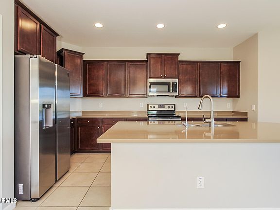 Here's your opportunity to own a stunning home in Blue Horizons! This open floor plan residence boasts a neutral palette, tile floors in all the right places, abundant natural light, and plush carpet in every bedroom. The immaculate kitchen features stainless steel appliances, recessed lighting, stylish cabinetry, quartz counters, pantry, and a spacious island with a breakfast bar. Additionally, find a perfectly sized den and a convenient laundry room. Retreat to the master bedroom with its en suite bathroom featuring dual sinks. Outside, relish in the breathtaking mountain views from the covered and paver patio, enhanced by a view fence overlooking the mountains and canal walking path. Gas stubs are available in the kitchen and patio for your convenience. Don't miss out on this gem!