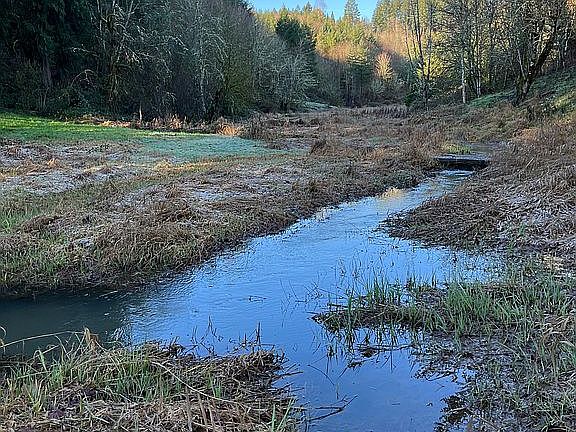 Private 14 acres in Sherwood Forest. Located at the end of a dead end paved road. Huge outbuilding, covered outdoor kitchen area, trails, creek, park like setting, fruit trees and already landscaped. Currently has a 2016 manufactured home 3 bed 2 bath open concept. Or you can build a dream home instead. Surrounded by blueberry fields, forest and a winery.