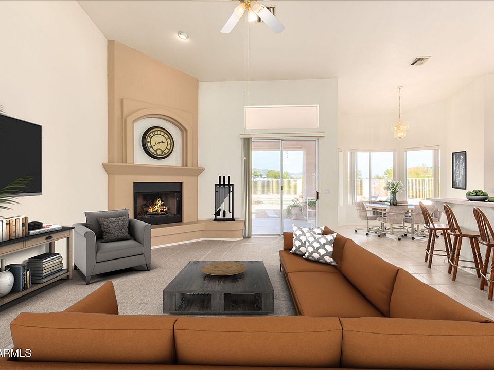 2.6 ACRE HORSE PROPERTY! Gorgeous mountain views in highly desired Beautiful Arizona Subdivision with a Sparkling Pool, RV Parking and No HOA! Spacious custom home offers 3,006 ft nestled on 2.635 Acres, 3 bedrooms, 2 bathrooms, 2 car garage, high vaulted ceilings, open floor plan great for entertaining, large kitchen with island, a plethora of cabinets and large pantry. Gas fireplace, separate detached storage area or workshop. The 3rd car garage option is a Bonus/Game Room or could be used as a media room, exercise room craft/sewing room or home office. This floor plan has a 3rd-car garage bay option, this room was being utilized as a game room but can be converted making it a 3-car garage! This parcel can be split with 1.3 acres being sold separately and horses are allowed. Property is close to brand new shopping, grocery store, restaurants and easy access to Loop 303 and I-10.