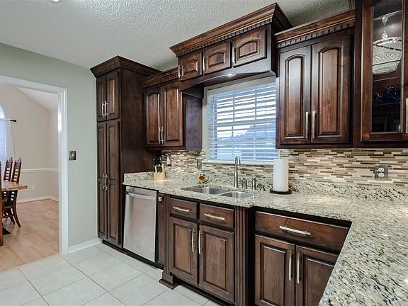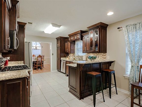This home sits in the highly desirable neighborhood of Autumn Leaf Estates. It offers fresh paint throughout and a versatile enclosed sunroom/bonus/bedroom complete with a closet. The kitchen offers rich dark custom cabinets with a built-in work space, complete with granite countertops. The formal dining room's vaulted ceiling and crescent style transom window allows for a light and airy feel. The living room has trey ceilings crown molding, recessed lighting and a gas-burning fireplace w/mantle for decorating. The second bedroom also offers a vaulted ceiling and crescent shaped transom window and walk in closet. The master suite has trey ceilings and the impressive master bath offers double vanities, extra cabinet storage, a walk-in shower, 2 walk-in closets, a private water closet and soaring vaulted ceilings. The back yard is spacious level and completely fenced. The back patio has been extended for entertaining and the workshop/storage building will convey. Don't miss the chance to see this lovely home. You will fall in love with the curb appeal, the floor plan and the big backyard.