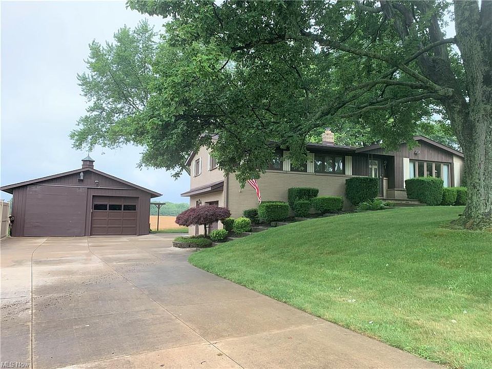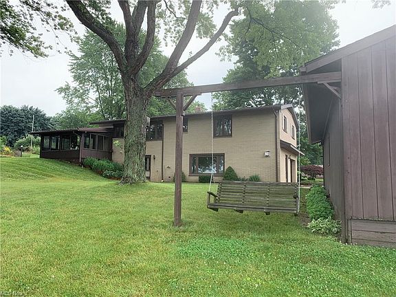 Awesome view of sunset from two picture windows and the three season Sun Room. Quality all brick ranch located on a quiet country circle with 13 houses and a church. The moment you step in you will notice the abundance of natural light, perfect oak trim, neutral decor. Living room flows into dining area and pleasing updated oak kitchen with can lighting . Two level Sun Room off kitchen. All 3 bedrooms have double closets, ceiling fans. Bedroom 2 has a gorgeous tongue and groove ceiling. Nicely updated bath. Surround sound up and down. Walkout lower level boasts a Rec Room with fireplace, laundry area, washer, dryer, full bath with ceramic tile, clean dry storage, one car garage. Every mans dream is 4 car pole building 24 x 40 with its own electric service, 220 volt, nice clean cement floor, plug in for your compressor. Peaceful backyard overlooks a farmers field. 10x14 shed with electric, firepit, swing. Roof 5 years ago.