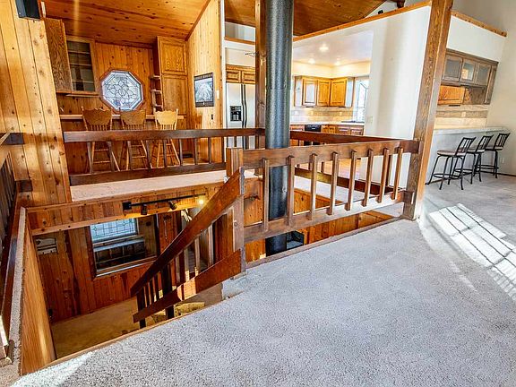Spacious home on large corner lot in between The Village and Canyon Lodge. Easy access to skiing at Canyon Lodge. Open deck with 180 degree view of the mountains. Nicely landscaped with mature trees and fenced yard in the back. Vaulted ceilings with lots of light. Central wood burning stove for great heating, large fireplace in living room. Great house for entertaining, with nice bar area and large remodeled kitchen. Plenty of storage under house and in the two car garage. Driveway has been redone in brick pavers.