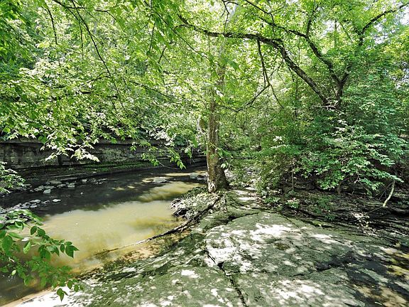 Privacy is excellent on this historic land, with a creek, and a marvelous little A-Frame to call home, perfect for an empty nester or as a second home retreat. There is an amazing historical rock quarry where limestone was obtained to build the scenic stone bridge beside this land. Seller states that there is a rear access easement for more egress (needs dozer work to make it functional) and the possibilities are endless to make use of this huge, flat, limestone area. Need to park an RV? Prepper? You will be amazed at the private space. Across the street, enjoy the sound of water running over the old dam and the beautiful palisades of Jessamine Creek. The woodland pathways are a hiker's dream. The master bedroom is on the first floor, and there is a loft upstairs (no closet). Two full bathrooms are on the first floor. You have the opportunity to own a slice of history with this unique property only 25 minutes from Lexington. (Occupied, please make an easy appointment to see)
