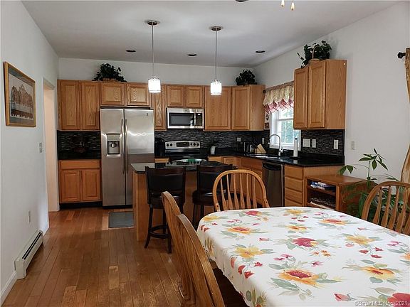 Wonderful 4 bedroom colonial with 2 full baths and 2 half baths, central air and a 2 car garage. The home has so much to offer like a gorgeous eat in kitchen with a center island, granite, stainless steel appliances, and a large pantry. The dining room is great for large dinner parties and the family room has a wood burning fireplace with a marble hearth. You will be impressed with the spacious bedrooms and their ample closet space. The master bedroom suite has its own bath with a whirlpool tub, a walk in closet, and also 2 additional closets. The lower level adds another huge family room perfect for watching tv, gaming, and a home office. To top this off, there is a custom wet bar with plenty of seating and an additional half bath. The home is situated far from the road on a serene 1.31 manicured lot filled with gardens, flowers, a picnic area and trees. The deck off the kitchen lends itself to many a party and for relaxing overlooking the gorgeous yard. Enjoy the nearby attractions like Mystic Seaport, Mystic Aquarium and downtown Mystic which has plenty of restaurants, boutique shopping and an exciting nightlife.