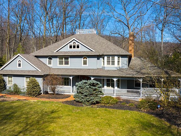 Truly an Exceptional Custom Built Home, as seen in the quality materials, Craftsmanship, attentions to Design and the Perfect Location. This home offering 5 bedrooms, 3.5 bath with 4,796 sqft of total living space will check all your boxes. Sitting on a 0.69 acre lot on a cul de sac with mature trees and stunning landscaping. The present owners have meticulously updated and maintained the home to enhance the open flow floor plan. As you approach the home you will appreciate the large wrap around porch. Perfect to sit out and enjoy the views of this peaceful setting. A welcoming front entrance offers a custom solid wood door with stain glass. As you enter the home, take note of the beautiful foyer with hardwood floors, a front formal staircase and an oversized walk in coat closet. Featuring impeccable hardwood flooring, Light filled rooms, Oversized windows with plantation shutters and ceiling heights ranging from 8 to 11 ft throughout the home. This inviting home offers a formal living room that is now being used as office, a dining room perfect for large diners and entertaining, a great room with vaulted ceilings and a fireplace with beautiful custom millwork, and beautiful views. The Great room opens into a spacious and updated Chefs eat in kitchen. From the kitchen eat in area, there are custom sliding patio doors to the rear yard and patios. The outside space is designed for entertaining and relaxing. Featuring a stone patio, outdoor built in cooking space, a beautiful pond, and of course an outdoor swing. All this to enjoy while you are sitting outside and enjoying the mature landscaping and privacy. Coming back into the custom designed kitchen which offers a built in desk area, glass display cabinetry, updated appliances, a large center island and eat in areas at the island along with a wall of built in pantry cabinets. This is a dream kitchen that will be enjoyed by all. Off the kitchen area you will find a large walk in laundry room with built ins, and lovely powder room with a custom pedestal sink. There is also a large mud room area that accesses the oversized garage which has a separate work room with built in cabinets. This room is perfect for storage, gardening or work shop. There is a separate wide staircase in the garage to the lower level unfinished area making it easy to carry your outdoor furniture to store for the winter. The main staircase of the home is a split staircase. There is access to the upper floor from from the foyer and from the kitchen area. The upper level of the home offers 5 bedrooms, which are very spacious with great storage. The primary ensuite on this level features a large primary bedroom with a window seat area and two large walk in closets with custom built ins. A primary Bath with Jacuzzi tub, Walk in shower, double sinks with granite countertops along with a linen closet. The 4th bedroom is off the primary suite with an attached entrance. This room is now being used as a nursery but could also be an office or exercise space. The lower level of the home is accessed from the main floor off of the kitchen area. You will find a large brick fireplace separating the finished areas of the lower level. The finished areas are well designed for playing games, a theater space and an exercise space. There is a full bath on this level. The unfinished space on the lower level offers great storage and easy access to mechanicals. The picturesque location of this home is beautiful. At the end of the street you can step onto the trails of Rocky Ridge park. You are minutes to shopping, schools, and easy access to Rt 30. The location is perfect if you are looking to live with easy travel times to many parts of York County or Lancaster County. Please make sure to read the attached update addendum with all the extras this home offers. You will not want to miss this home.