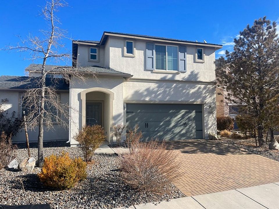 This spacious four bedroom features plank wood flooring throughout the first floor. Room off entry can be used as an office/den or formal dining room. Living room with access to patio space with pergola. Open concept family room with ceiling fan windows for natural light. Kitchen with granite counter tops, all stainless steel appliances including; fridge, gas stove, built-in microwave and dishwasher. Island for bar seating. Slider access to paver stone patio. Additional room downstairs with half bath. Second floor opens to roomy loft with ceiling fan. Primary bedroom with two separate area and walk in closet. Attached bath with garden tub, glass enclosed stand up shower and dual sinks. Laundry room with washer and dryer. Three additional bedrooms and hall bath. Close to shopping, restaurants, entertainment and nearby freeway. Tenants responsible for all utilities; electric/gas, water, trash & sewer. No pets or co-signers considered. Renters liability insurance required for all financially responsible tenants This is a one year lease. All properties require an application process. Each person over the age of 18 must complete an application. The application fee is $35 per person. Applications include running credit (650 or better), employment/income verification, and rental references. NV. BS.0143495, NV. PM.0164783
