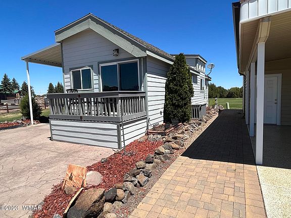 Beautiful home on golf course, vaulted ceilings, large 2 door refrigerator.Xlarge master BR with a sleep # King Bed with remote reclining for each side. 10'x14' addition could be possible BR, workroom,winter package, insulation blanket under the home W/bulk insulation. Piping underneath also have foam around. Larger kitchen W/ dishwasher. 2 storage sheds, covered deck with propane grill top table. Part time or Year around living home all electric. Come take a look at this fabulous property!!!