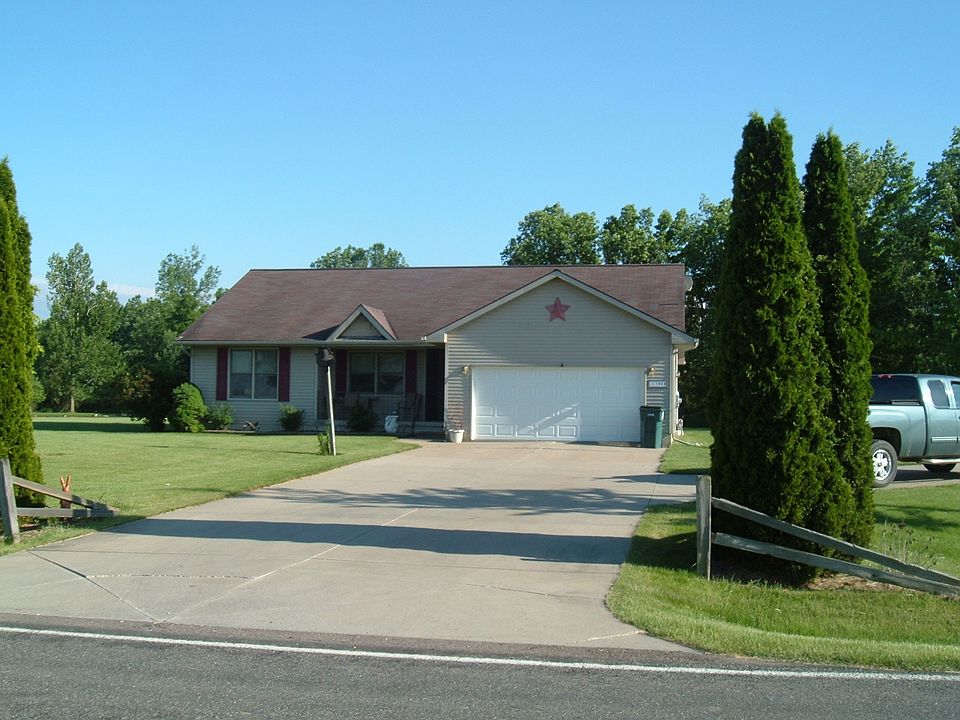 For sale by owner, this beautiful 3 bedroom, 2 bath ranch home sits on 6 partially wooded acres, gorgeous lawn, pond, pool and 30 x 40 polebarn. Home sits on a full basement, has first floor laundry room and gas fireplace. Knotty pine floors in kitchen and dining room, very nice well kept home. thank you !