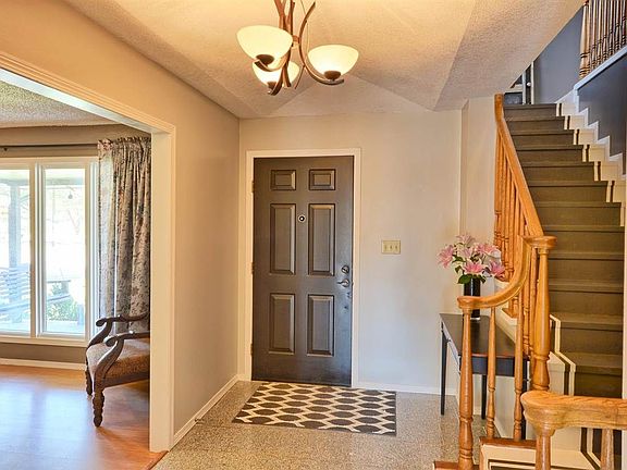Priced to sale! Great view of river. Open foyer, Main floor family room with vaulted beamed ceiling, stone wood burning fireplace. Open kitchen with eating bar, with solid surface, and dining space. Main floor living room. 2 bedrooms and 1 bath on main level, Spacious master suite and master bath including soaker tub on Upper level with walk in closets. Separate sitting area at the top of stairway. Finished basement has family/rec room, 2 hook ups in laundry room, and one additional finished room. Fenced back yard, oversized two car garage with a new garage door. Additional unfinished basement with access off garage.