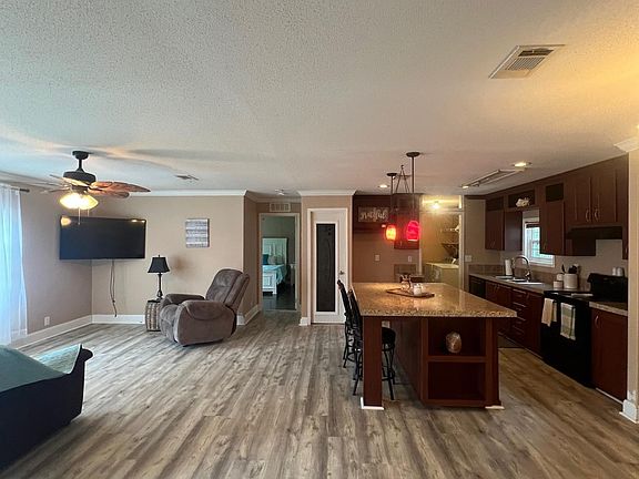 Welcome to this charming coastal 3-bedroom, 3-bathroom home with addition that serves as a large second living space with a separate entrance to accomodate a mother in law suite. This home boasts a spacious open split floor plan. The inviting living areas seamlessly connect to the well-appointed kitchen, with large island, and features a full pantry and ample space for cooking and entertaining. The highlight of this home is the expansive 24x28 additional living space with its own bathroom, perfect for a family room, game room, or guest suite. Above this addition, you’ll find convenient walk-in attic storage that can be converted into extra living space. The primary suite includes a luxurious garden tub and a walk-in closet, while each bedroom offers ample storage with its own walk-in closet. Additional features include a workshop/storage area in the back of the addition, ideal for DIY projects or extra storage needs and an additional shed in the private backyard. This property is in the highly desired, safe, pet friendly, beach neighborhood of Spanish Cove, a coastal paradise gracing the shores of Perdido Bay, just 5 minutes from the Lillian boat launch and only 15 minutes from the sugar white beaches of the Gulf of Mexico. There is something for everyone in this coastal golf cart community that sits on the Alabama/Florida line. Owners enjoy membership with a lifestyle full of amenities and remarkably affordable POA Dues of only $74/Mo (dues paid quarterly) and includes trash pick-up, 24 hours security, and key FOB entry into all facilities. Enjoy two clubhouses, a beach, 500-ft pier, a year-round pool, pickleball and tennis courts, basketball court, fitness facility, laundry room, playground, shuffleboard, nature hiking trails, community-organized activities-aquatic classes, Bingo, card games, live bands, book clubs, game nights, garden club, and group travel opportunities. This is a fantastic choice for anyone seeking a charming getaway or full-time residence. Buy