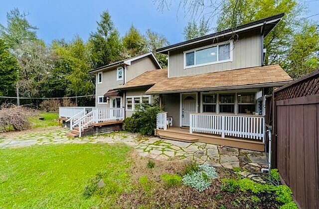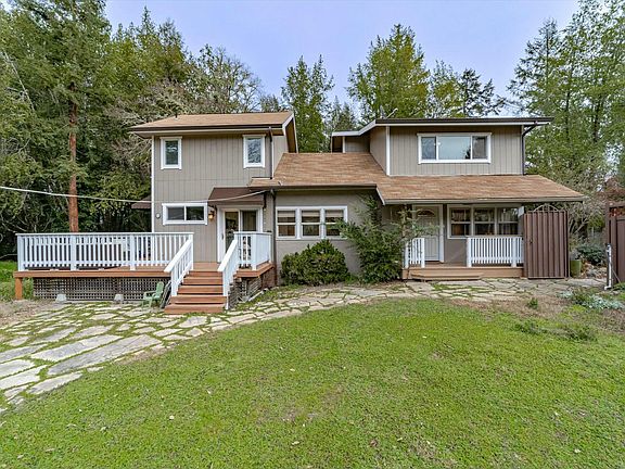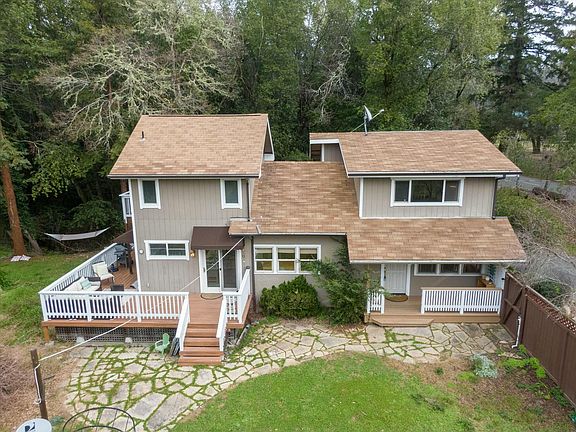 Stunningly renovated 3-Bedroom, 1.5-Bath Home on 1.18 of an acre. This beautifully upgraded 1,800 sq ft home provides the perfect blend of tranquil country living and modern conveniences, all within easy reach of town. A contemporary kitchen with stainless steel appliances, custom cabinetry and granite tile countertops. Full bathroom downstairs equipped with custom vanities and stylish tile flooring. Half bath upstairs with tall ceilings, vanity and beautiful tile floors. Home has been upgraded with dual-pane windows complete with window treatments, freshly painted interiors throughout, elegant hardwood flooring and built-in cabinets. The home is bathed in natural light, with french doors leading to an upstairs balcony and a downstairs deck featuring Trex decking for seamless indoor.. outdoor living. Convenient carport for parking. Set on over an acre of flat, usable land. The property features a large workshop, 50x60- equipped with a separate 200 amp power supply. Private well and 8,000-gallon rain catchment tanks and Chemise Creek flowing along the back of the property. High speed Star-link internet and 2 PGE meters. Lush landscaping provides shade and tranquility, with relaxing fire pit/hang out area, and plenty of space to entertain, have hobbies and enjoy! Indulgence, ease, seclusion, and tranquilitythis homestead in Humboldt is truly a hidden treasure.