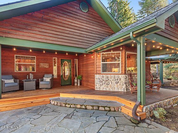 Want something with character? Stunning single-level Rathdrum estate on 4.8 park-like acres of mature trees at the end of a quiet road. This 2,544 sq ft home offers 4 beds and 2.5 baths, designed with quality craftsmanship. Chef's kitchen features knotty pine cabinetry, large island with waterfall quartz counters, wine fridge & expansive windows that frame views of the property. The living room showcases vaulted T&G ceilings & floor-to-ceiling stone, wood-burning fireplace. The spacious primary suite has a walk-in closet & ensuite complete with walk-in shower, jetted tub & stunning views. Large laundry/mud room with additional storage. Notable upgrades include new roof & gutters, hickory floors, solid wood doors, under-cabinet lighting & dual water heaters. Outside enjoy the wrap-around porch, asphalt driveway, & attached 3-car garage, plus an impressive 40x40 insulated shop with loft, wood stove, power, plumbing for a future bathroom, and 14' lean-to. A rare blend of luxury & privacy