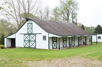 Situated on over 10 acres on St. Joseph river with over 440' of frontage. Very well maintained brick ranch features original hardwood flooring, 2 fireplaces, radiant heat and balcony off the living room with breathtaking views of the 10 acres. Finished lower level wakout offers a summer kitchen, den, family room and a workshop area. This fabulous country setting has 2 out buildings, one is a 5 stall horse barn with tack room. Nature lovers paradise with plenty of wildlife, excellent fishing and even boating. Buyer could easily obtain a variance to build a road leading to the river and even build another home. Opportunites are endless here.... A MUST SEE TO APPRECIATE!!!