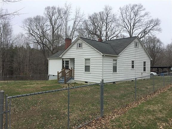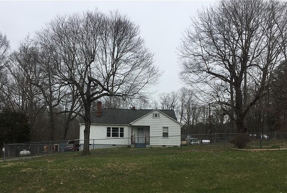 Spacious 3.68 Acre parcel in Guilford County is mostly fenced with electric fencing and features circle drive, outbuildings & creek access. Home has large eat-in kitchen, living room with masonry fireplace and a den! Gas range, refrigerator, washer & dryer convey. Two bedrooms and one bath with tub/shower combo. Hardwoods in living room & bedrooms.Lots of potential!! Fuel tank on property is leased from Euliss Propane, Liberty NC.