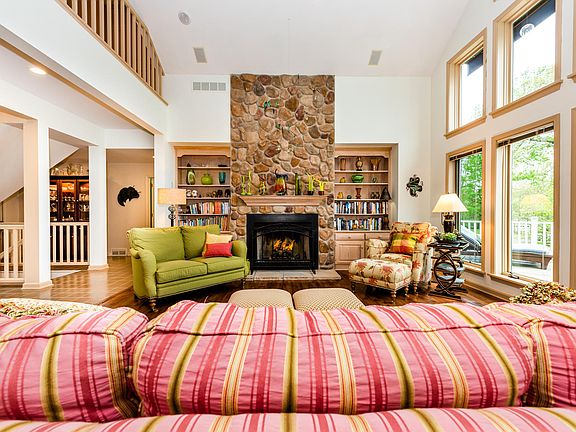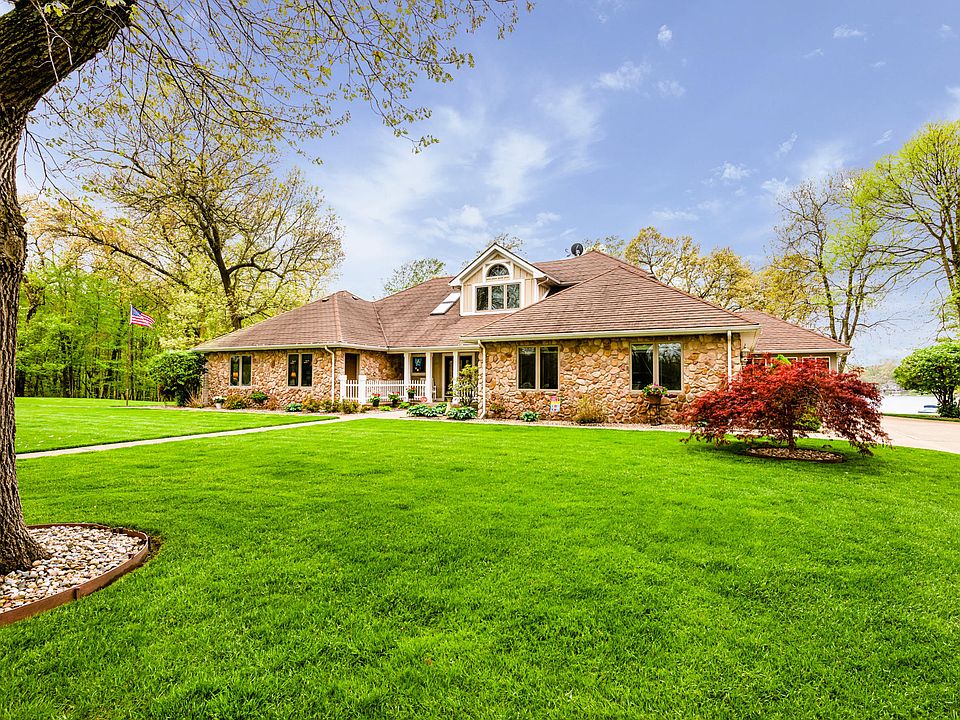 Gorgeous 4 bed, 3.5 bath lakefront home on all-sports Fisher Lake with a 100 ft. dock. This home offers over 5,000 sq. ft. of finished living space & one-of-a-kind amenities. Sitting on over 3.5 acres with a low maintenance composite deck that spans the back of the house with a walkout basement. Walk inside to an impressive foyer that leads into the living room with vaulted ceilings, a wall of windows to enjoy sunsets over the lake and a grand stone fireplace. The kitchen opens into the living & dining area for seamless entertaining and hosts a stainless steel appliance suite and granite counters. Off of the living room, find a 3 seasons room with a gas stove. The sprawling main floor master has deck access & includes an en suite bathroom with an oversized tiled shower & soak tub.