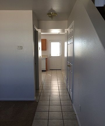 This floor plan has a closed off living room, eat-in kitchen area with a private patio in the back of the apartment. All units have a full sized washing machine, and dryer located downstairs. Both bedrooms are located upstairs separated by a full size bathroom with a traditional bath tub, and a linen closet. Each bedroom offers a large closet area and has an electrical outlet on each wall.