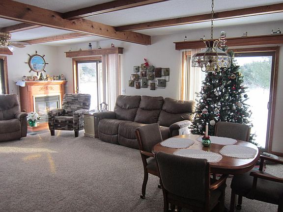 Nicely maintained & extremely clean move-in ready home on 4 acres. 3 Bedrooms, 1 Full Bath house features brand new carpet throughout, newer metal shingled roof (4 years), central air-conditioning, on-demand tankless hot water heater, brand new refrigerator & gas fireplace. The washer & dryer are newer units. All appliances staying with the house. Main floor laundry. Wrap around deck and covered patio to sit and watch the wildlife in your back yard.
